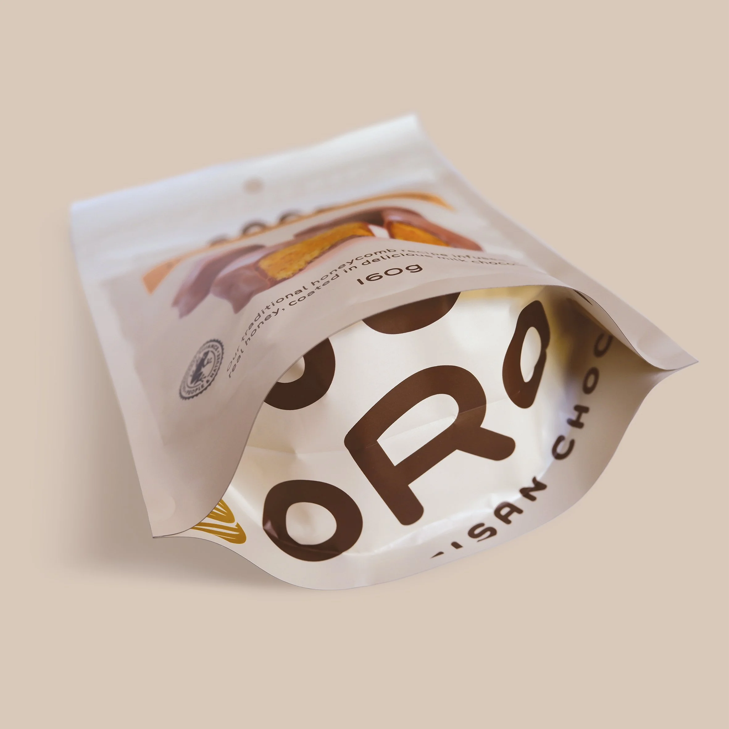 We then designed brand mark and packaging for this high-end chocolate honeycomb range. The brand is positioned as an artisan challenger brand – it’s point of difference being that it’s a contemporary, locally made offer with ethically sourced, high quality ingredients made using traditional, artisanal methods.