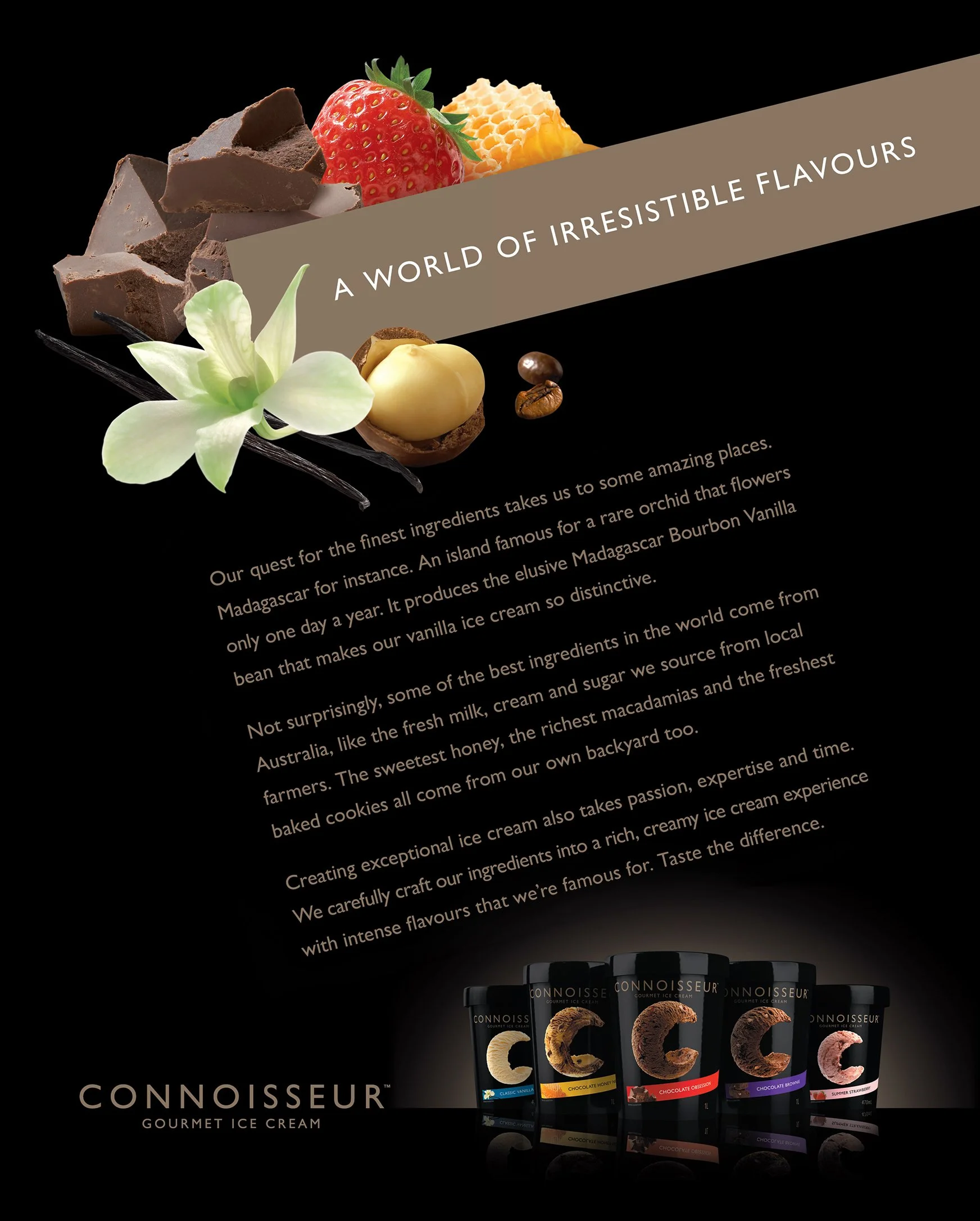 Connoisseur is a household name as the best-tasting premium take home ice cream in Australia, but on shelf it looked terrible.